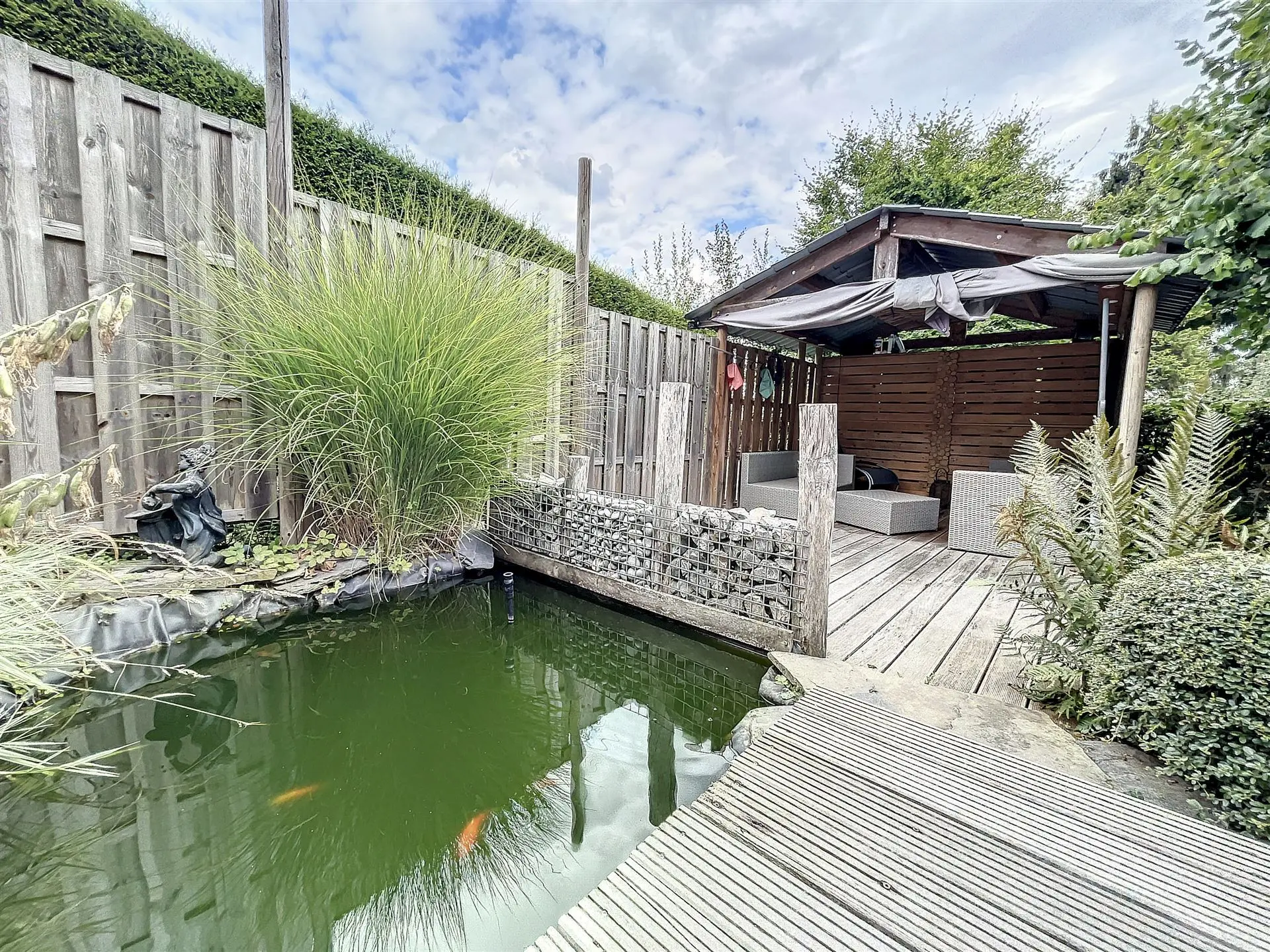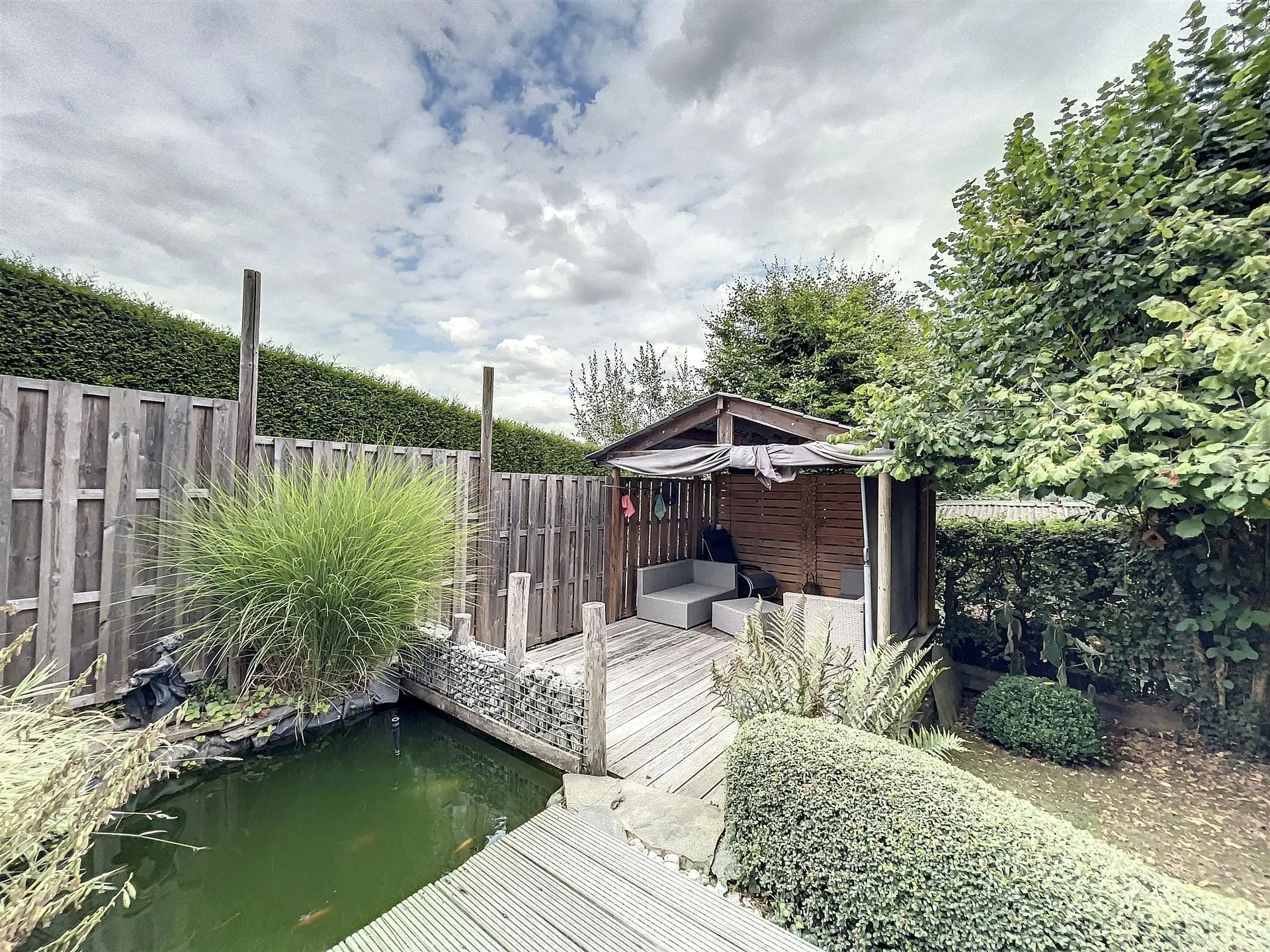 Ce plain pied vendu entièrement meublé se compose d’un bel espace de vie lumineux, d’une salle de bain avec baignoire ainsi que de deux chambres. L’extérieur vous enchantera tout d’abord avec sa pergola donnant en contre bas sur un petit étang et un jardin zen. Il ne manque plus que vous et vos valises, alors qu'attendez-vous ?