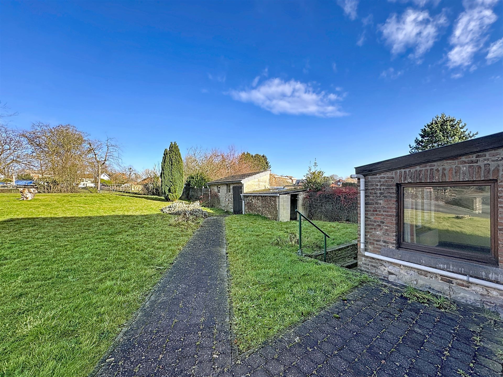 À l’extérieur, la maison bénéficie d’un agréable jardin, idéal pour profiter des beaux jours, ainsi que d’une annexe attenante offrant un espace de rangement ou d’aménagement supplémentaire, complétée par une dépendance servant actuellement d’abri de jardin.