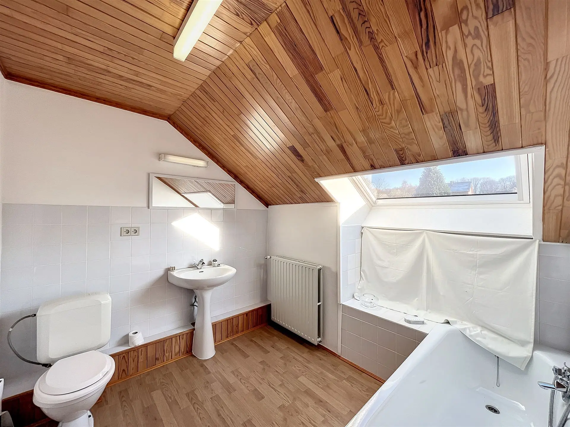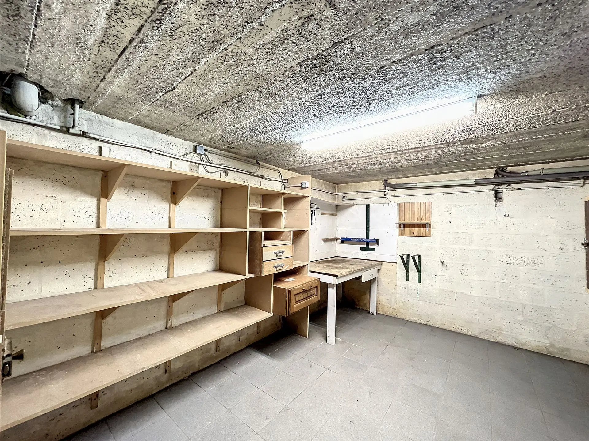 L'étage est actuellement aménagé en un appartement 1 chambre avec sa propre cuisine, salle de bain, espace de stockage…