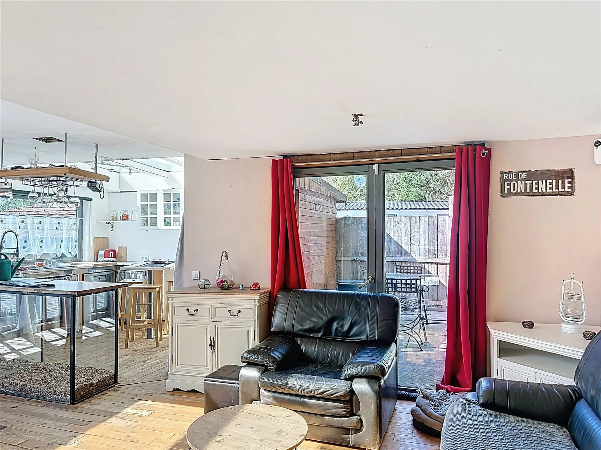 L’intérieur se compose d’un hall d’entrée, d’un salon lumineux avec cuisine ouverte où la convivialité est au rendez-vous, d’une salle de douche, d’un WC séparé ainsi que d’une pièce polyvalente pouvant servir de bureau, débarras ou espace de loisirs selon vos envies. Trois chambres complètent agréablement l’aménagement.